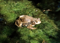 ヒキガエル・藻の生えた石の上にいる