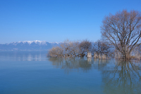 雪の比良山と琵琶湖