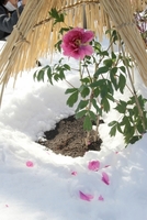 雪の上に花びらを散らす