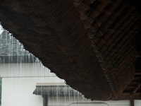 雨のかやぶき屋根