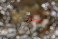 湿地の草に止まっているハッチョウトンボ