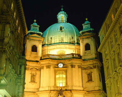 ウイーン,ヴィエンナ,Wien,Vienna,リンク,Ring,リングシュトラーセ,Wiener RingstraBe,ペーター教会,Peterskirche,バロック様式,カール大帝,Karl der GroBe,Charles the Great,シャルルマーニュ,カール1世,カロリング朝,ヨハン・ルーカス・フォン・ヒルデブラント建設,夜景,Night view,夜