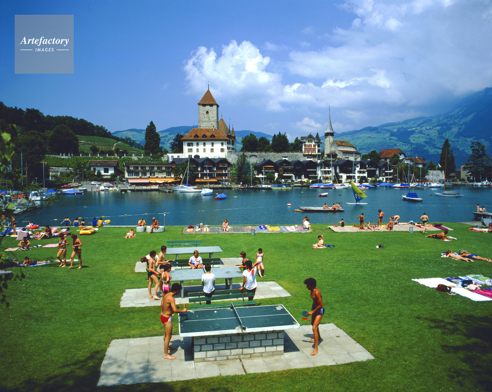 シュピーツの町と トゥーン湖,シュピーツ城,Schloss Spiez,卓球,ベルン州,Canton of Berne,ベルナー・オーバーラント,Berner Oberland,ユングフラウ地方,Jungfrau,アルプス,Alps,シュピーツ,Spiez,トゥーン湖,Lake Thun