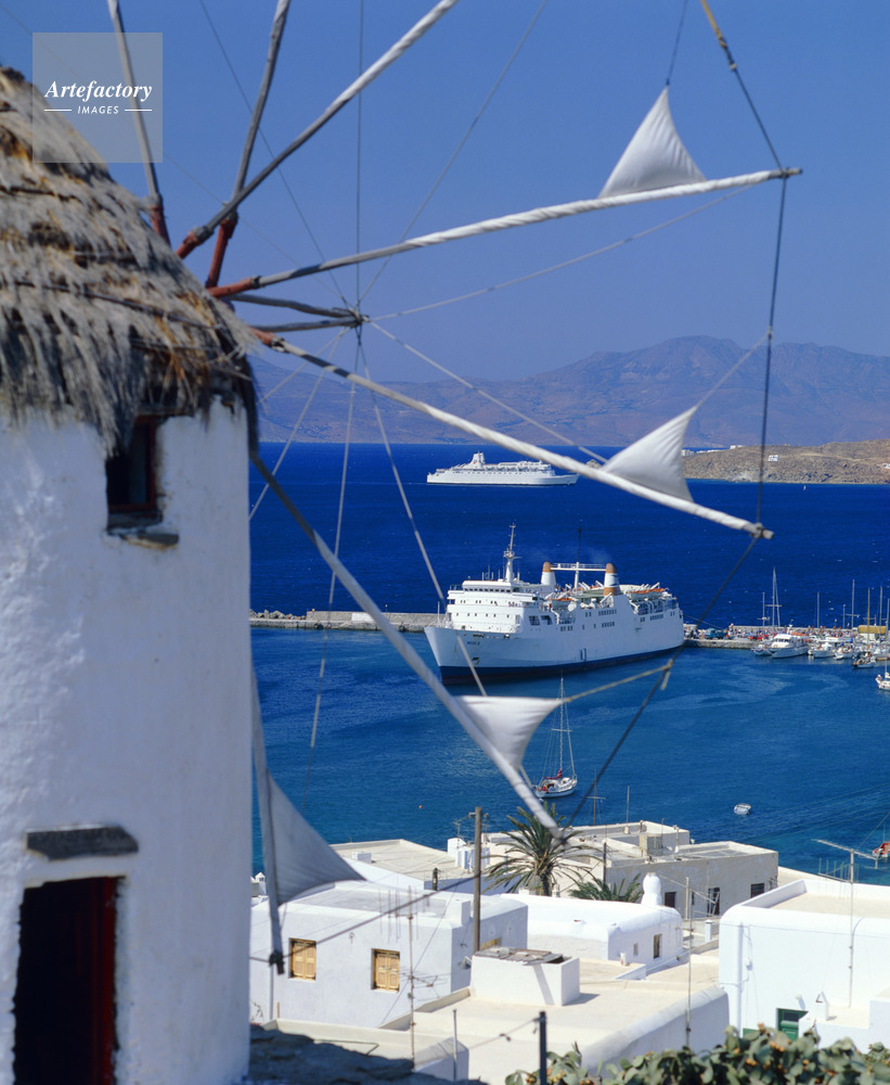 エーゲ海,Aegean Sea,キクラデス諸島,Cyclades,ミコノス島,Mykonos,島,Island,風車,Wind mill,Port,島,海,Sea,海洋,Ocean,客船,Passenger boat