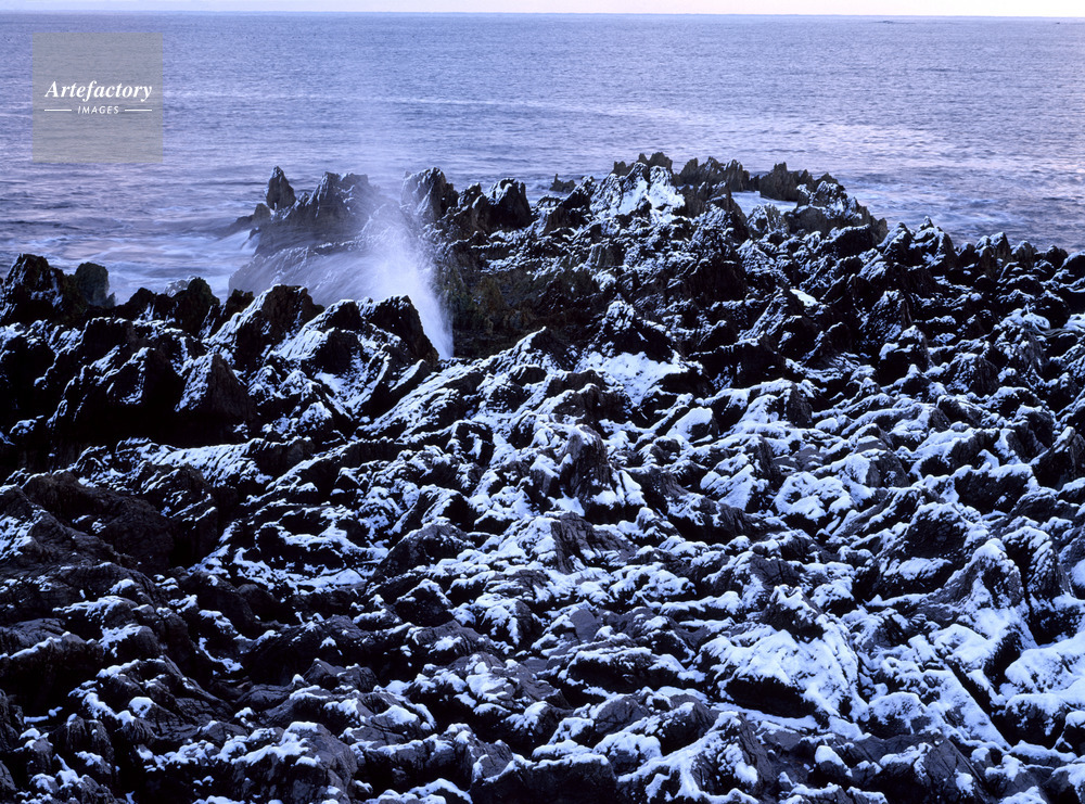 | 作品タイトル | 雪の岩井崎石灰岩化石・潮吹き岩 | モデルリリース | なし | |