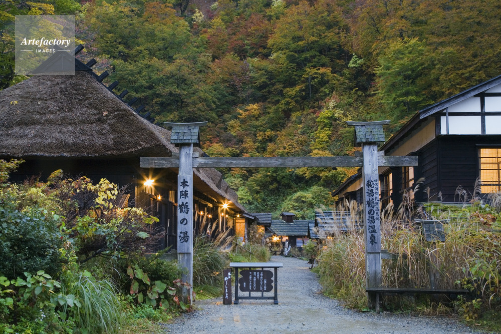 | 作品タイトル | 紅葉の乳頭温泉郷.鶴の湯の夕暮れ | モデルリリース | なし | |