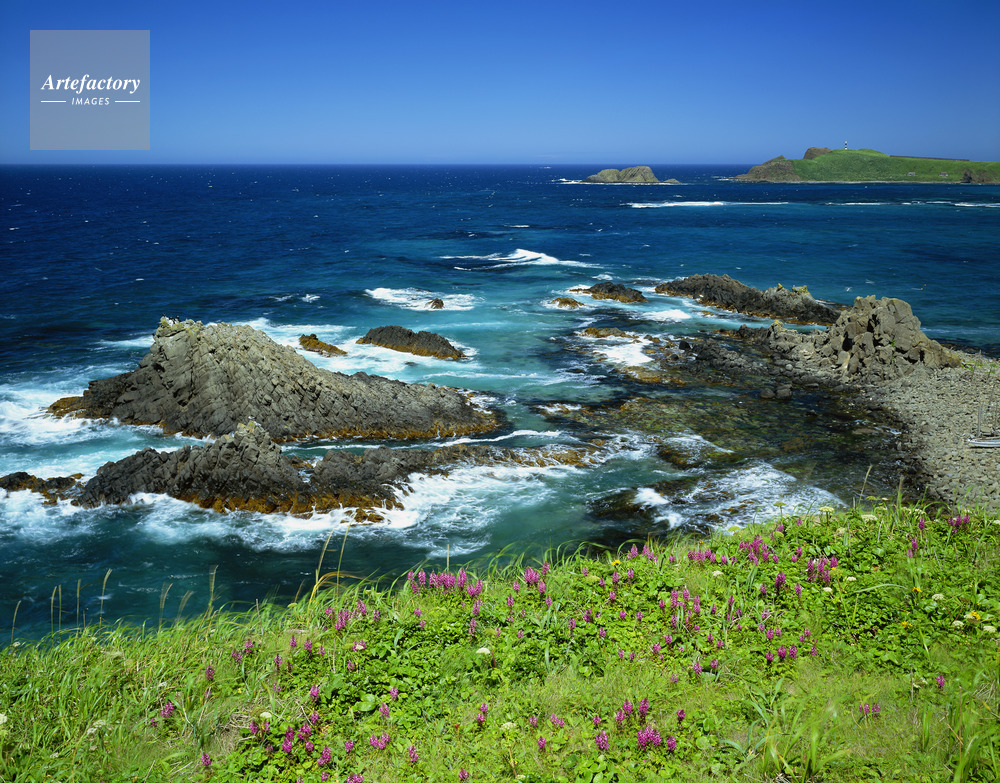 | 作品タイトル | ヨツバシオガマ咲くスコトン岬。礼文島 | モデルリリース | なし | |