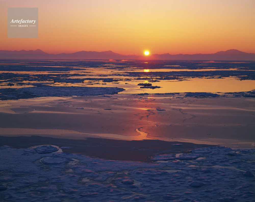 | 作品タイトル | 流氷と知床連峰の朝日 能取岬 | モデルリリース | なし | |