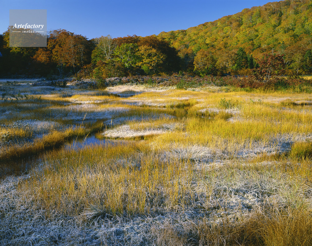| 作品タイトル | 初霜の地塘とブナ黄葉。八幡平・大沼の湿原にて | モデルリリース | なし | |