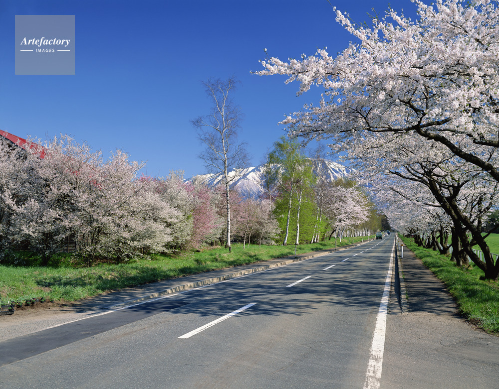 | 作品タイトル | 桜咲く道路と岩手山(南部富士)。小岩井農場付近 | モデルリリース | なし | |