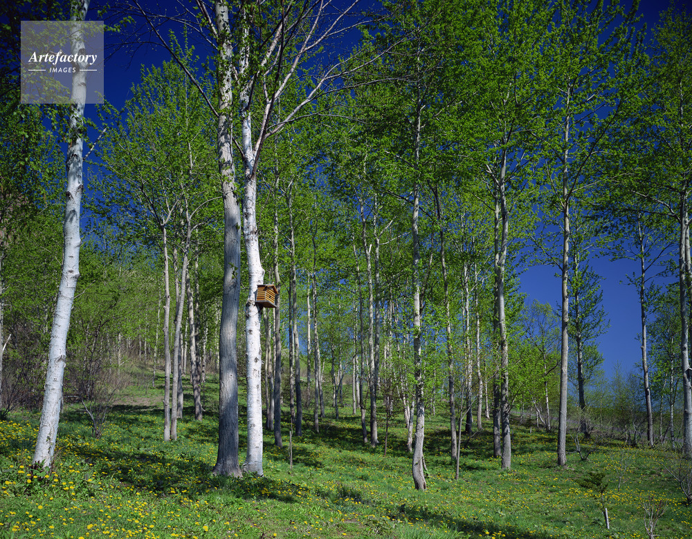 | 作品タイトル | 新緑の林と巣箱。昭和新山付近 | モデルリリース | なし | |