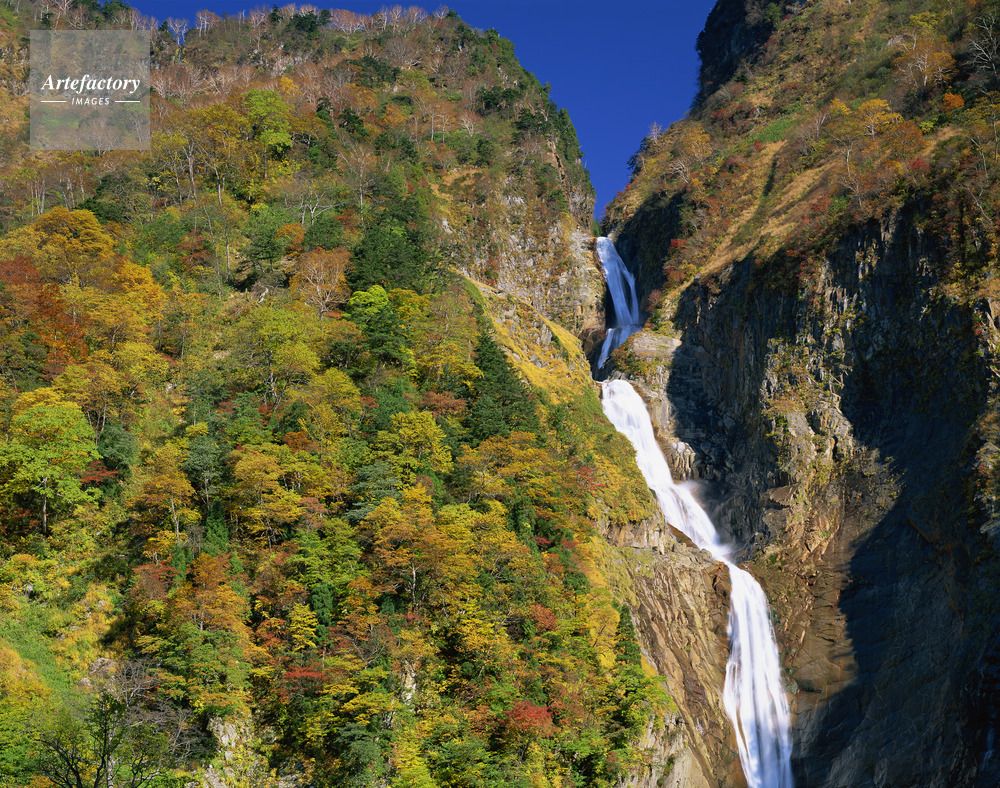 | 作品タイトル | 紅葉に彩られた称名滝。国指定天然記念物 滝百選 | モデルリリース | なし | |