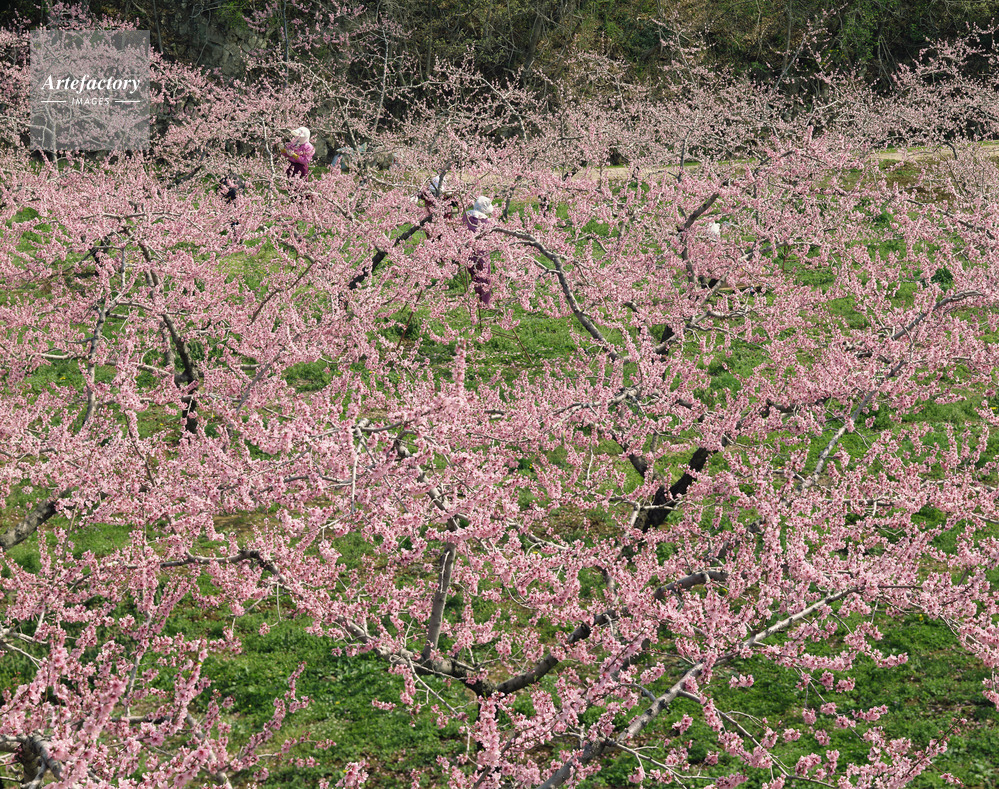 | 作品タイトル | 摘花作業する桃畑。飯坂にて | モデルリリース | なし | |