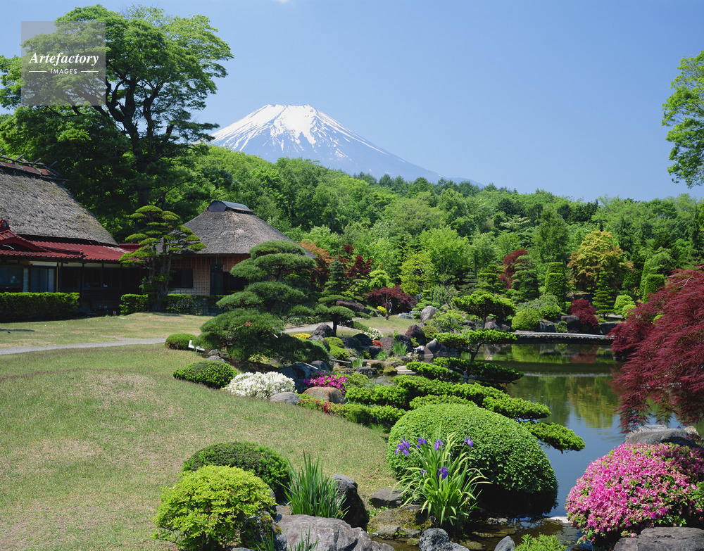 | 作品タイトル | 新緑の鱒の家庭園と富士山 | モデルリリース | なし | |