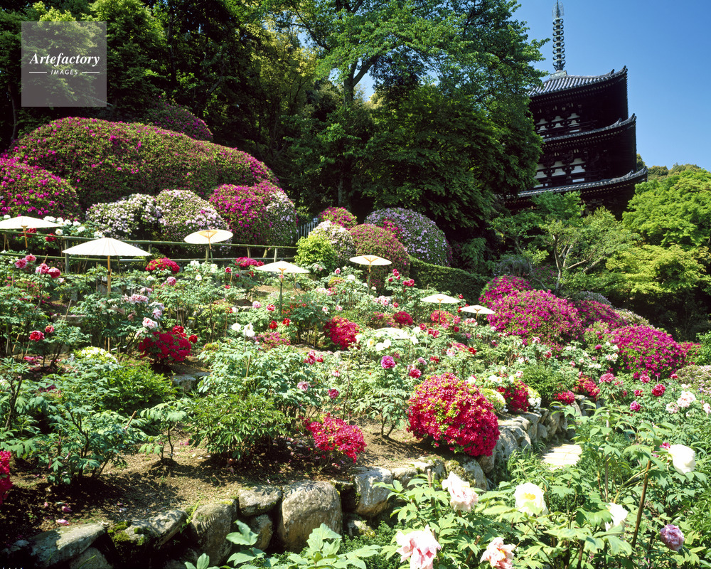 | 作品タイトル | ボタンとツツジ咲く双塔園より西塔 當麻寺護念院 | モデルリリース | なし | |