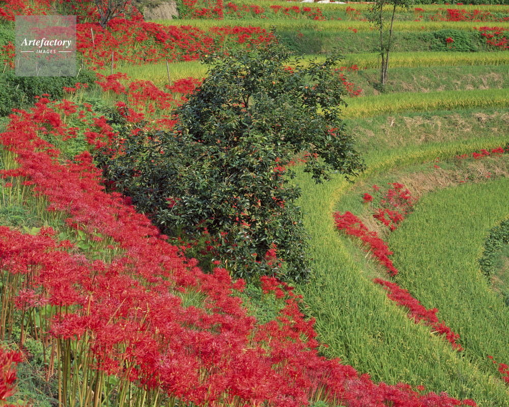| 作品タイトル | 神奈備の郷(稲渕)ヒガンバナと稲田 棚田百選 | モデルリリース | なし | |