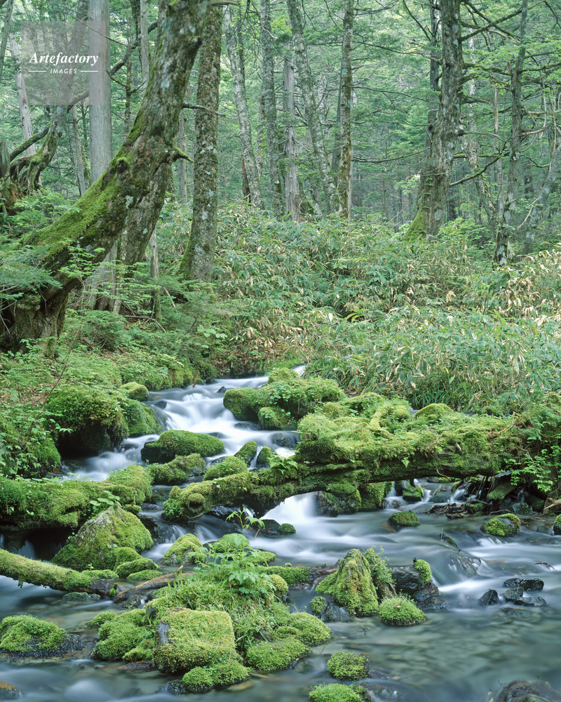 | 作品タイトル | 苔に覆われた小川。上高地・岳沢にて 名勝・国指定天然記念物 | モデルリリース | なし | |
