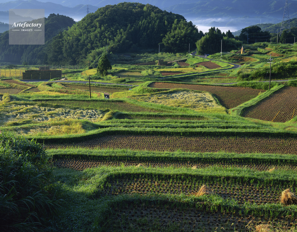 | 作品タイトル | 山王寺・稲刈りの頃、朝景色 棚田百選 | モデルリリース | なし | |