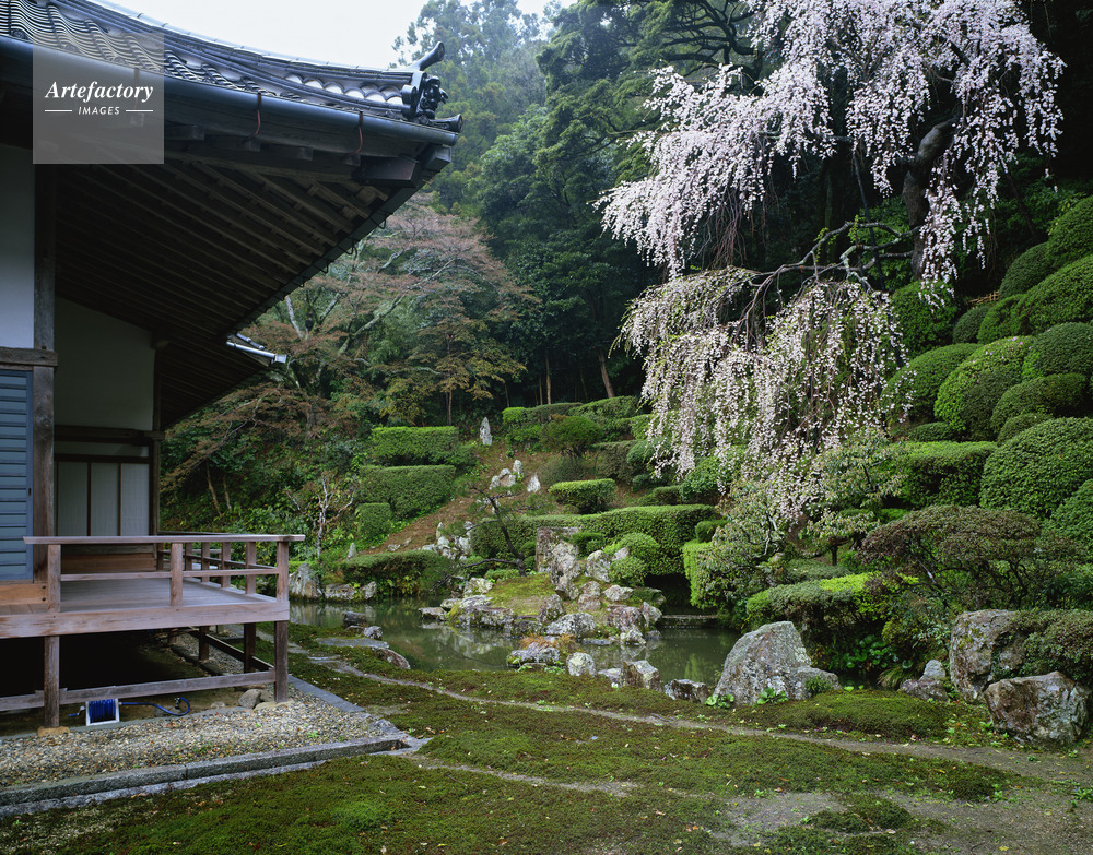 | 作品タイトル | 糸桜咲く医光寺雪舟庭園、樹齢約400年 名勝庭園 | モデルリリース | なし | |