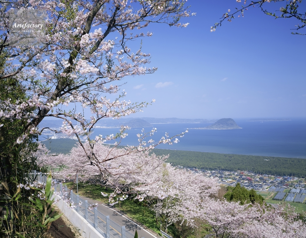 | 作品タイトル | 桜咲く鏡山ドライブウェイから虹ノ松原と玄界灘 | モデルリリース | なし | |