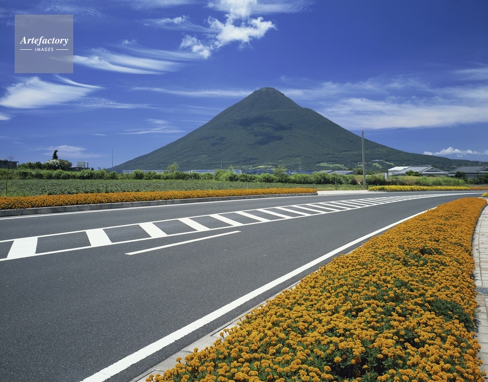 | 作品タイトル | マリーゴールド咲く道路と開聞岳(薩摩富士)夏景 | モデルリリース | なし | |