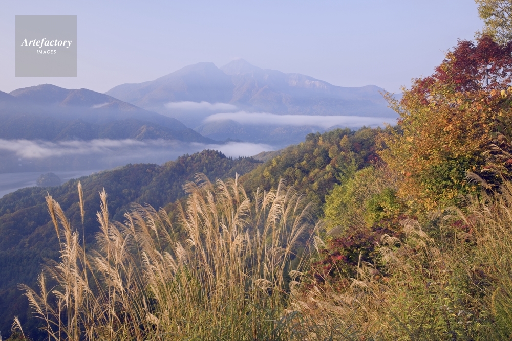 | 作品タイトル | 磐梯吾妻レークラインから朝霧の秋元湖と磐梯山 | モデルリリース | なし | |