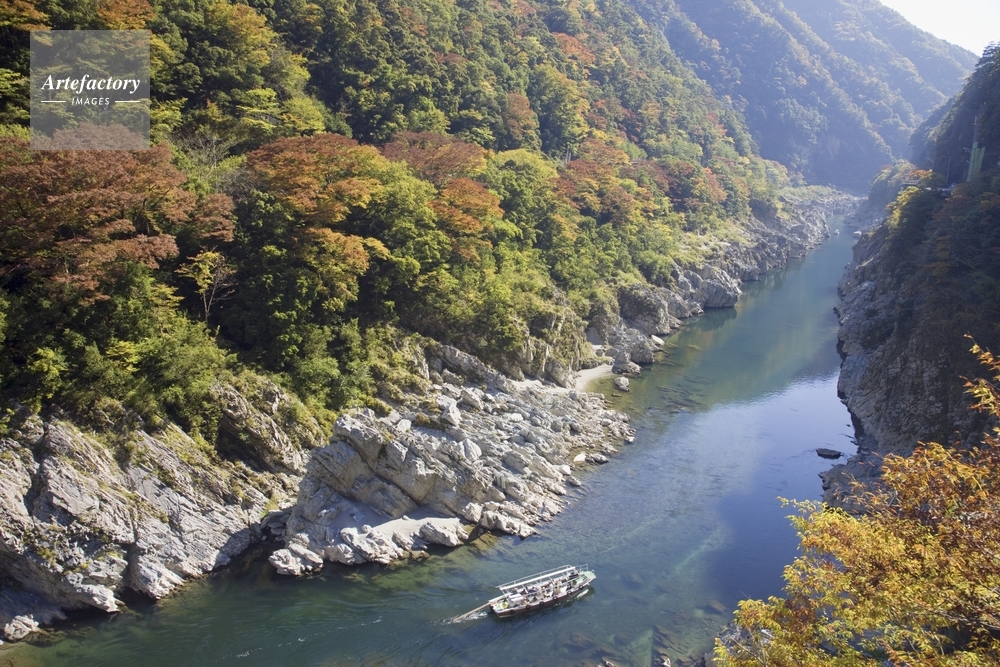 | 作品タイトル | 紅葉の大歩危峡と観光遊覧船 吉野川 | モデルリリース | なし | |