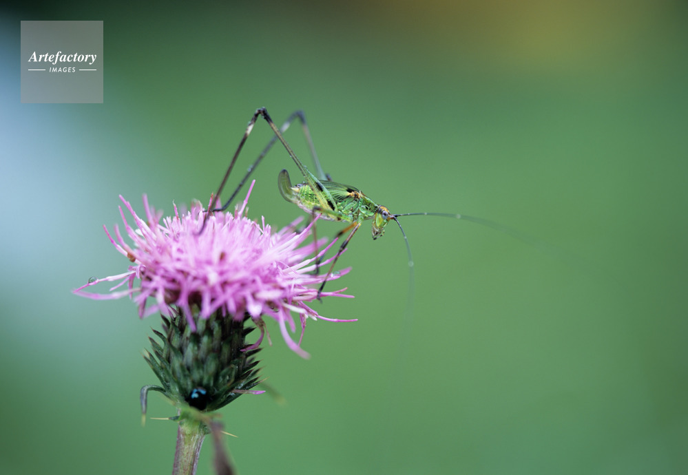 | 作品タイトル | 野原アザミと脚黒露虫(アシグロツユムシ)の幼虫 | モデルリリース | なし | |