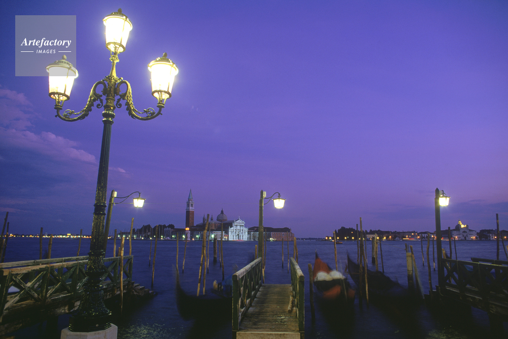 サン・ジョルジョ・マッジョーレ教会の夕暮れ,大運河,カナル・グランデ,ゴンドラ,世界遺産,文化遺産 / 1987