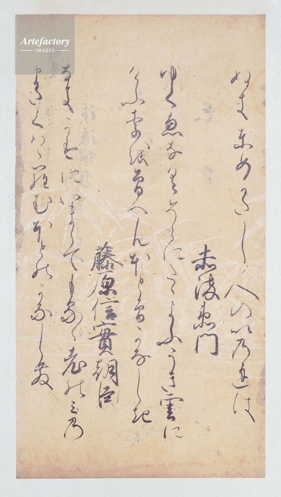 | 作品タイトル | 続後撰和歌集巻第十八断簡 長尾切 (手鑑「藻塩草」のうち) | モデルリリース | なし | |