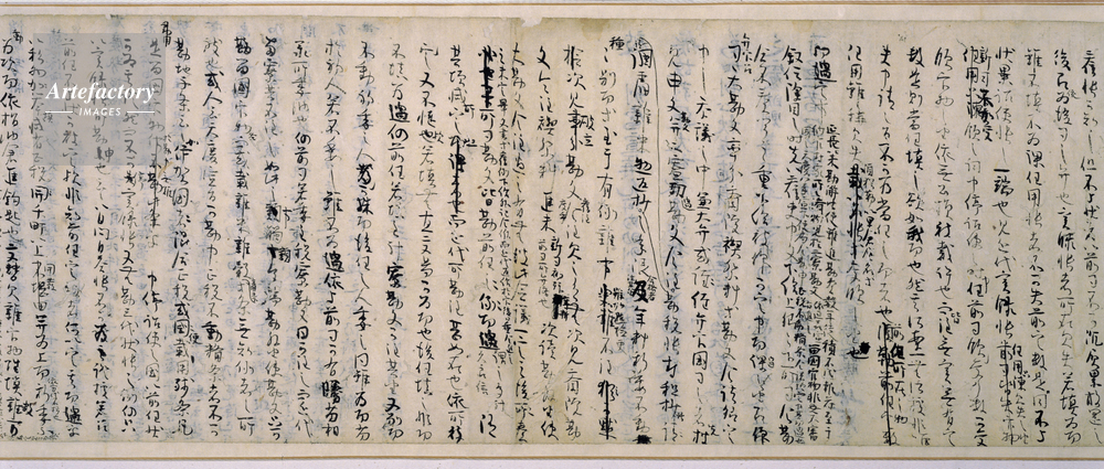 | キャプション | 紙本墨書,1巻, 藤原公任(966~1041)が、もろもろの朝儀典礼に関して、多くの典籍類を駆使し著した『北山抄』の稿本。全10巻のうち巻第十の「吏途指南」の1巻だけが残る。「吏途指南」はその名の通り、吏途(地方官の職務)について概要を記したもの。第1紙から第2紙の奥面にかけて、「吏途指南」の表題とともに目録が記され、末尾に「他巻又有此類、取捨可清書」の一文がある。この文章から本巻が稿本であることがわかる。また、本文にもいたるところに添削の跡がある。 『北山抄』は、巻第一、二、五、八の4巻がまず長和年間(1012~1017 (..) | 制限事項 | ||