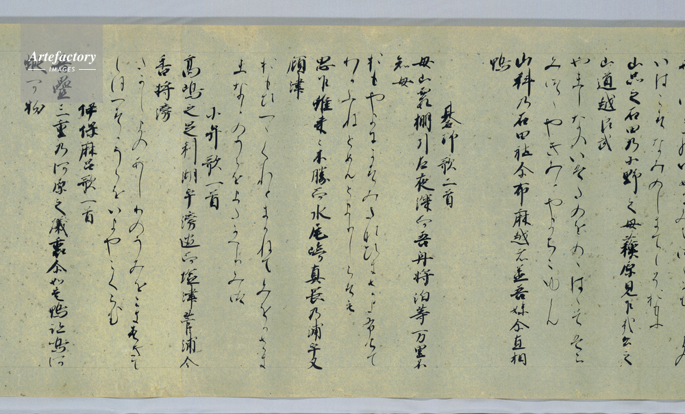 | 作品タイトル | 万葉集巻第九残巻(藍紙本) | モデルリリース | なし | |
