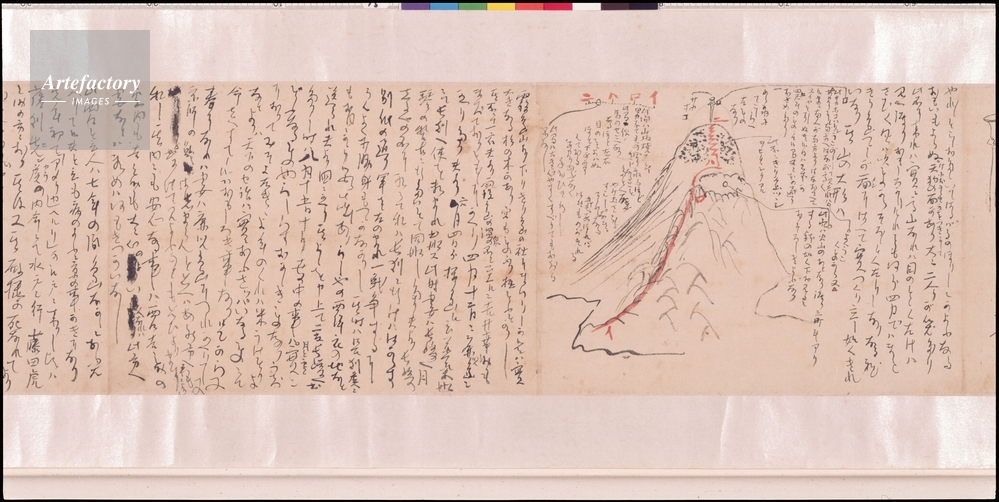| キャプション | 紙本墨書,1通 縦 25.0 cm 横 169.1 cm, 慶応二年十二月四日に土佐の姉乙女宛に出したその年一年の出来事を知らせる手紙。寺田屋での遭難から鹿児島への新婚旅行の様子、第二次幕長戦争、西郷吉之助のことなど多岐にわたる内容。特に霧島山登山の様子を絵入りで紹介している部分が有名である。坂本龍馬の手紙でももっとも知られているものである。 | 制限事項 | ||