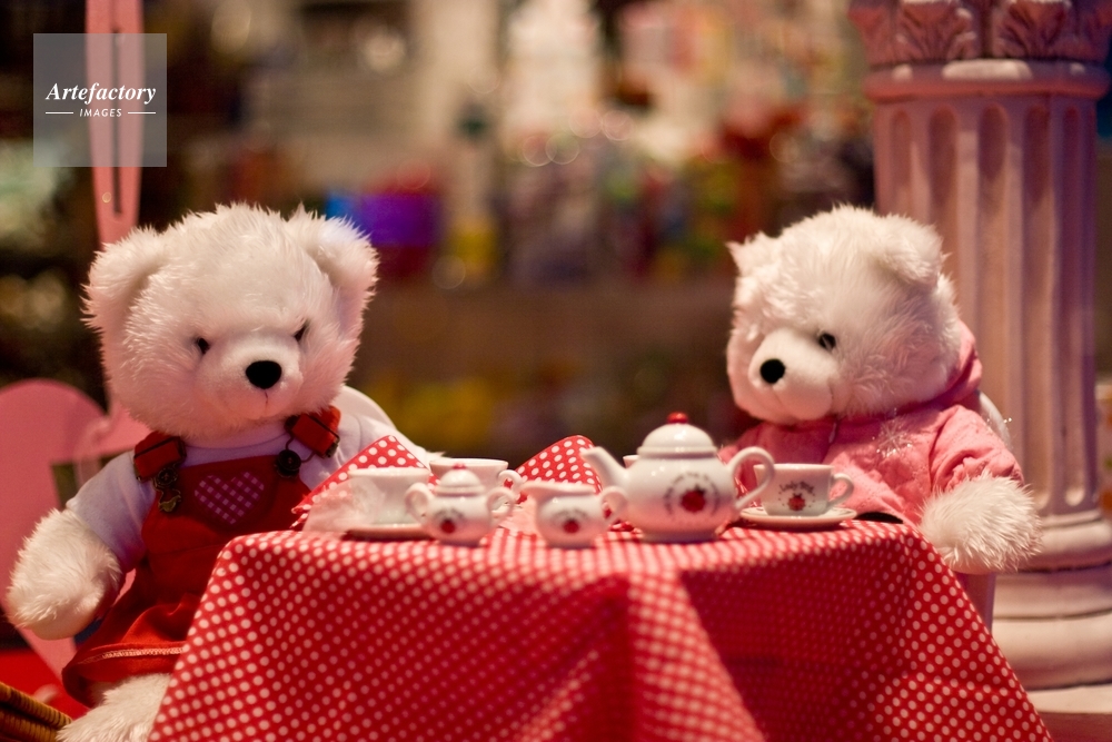 | キャプション | Bears enjoy a spot of tea, last night in the window of the Toy Jungle in Hermosa Beach. | 制限事項 | ||