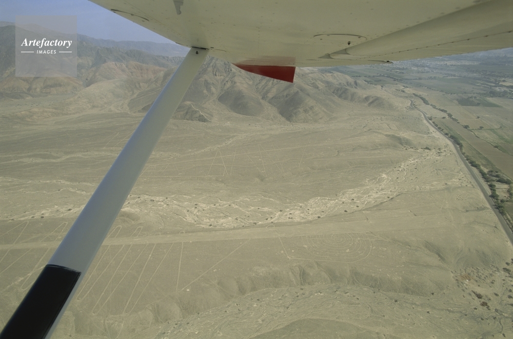 | キャプション | Looking down from a light aircraft on part of the Nasca Lines which are spread across 500 sq km of an arid rock-strewn plain in the Pampa Colorado. | 制限事項 | ||