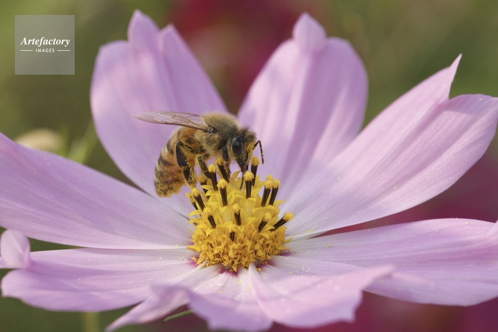 | 作品タイトル | セイヨウミツバチ、コスモスで吸蜜 | モデルリリース | なし | |