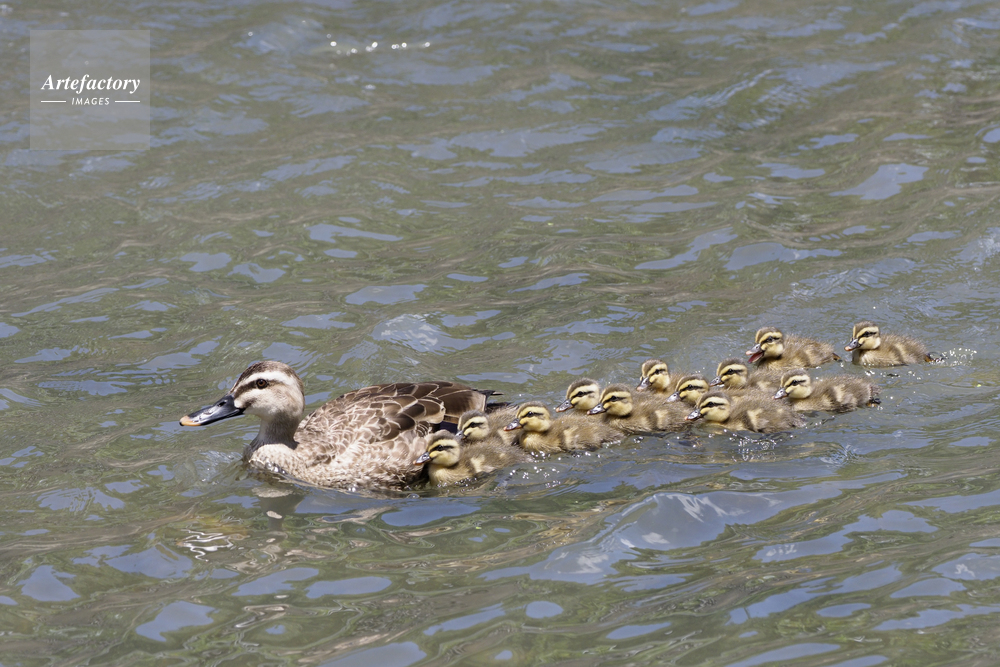 | 作品タイトル | カルガモ親子 12羽のヒナ | モデルリリース | なし | |