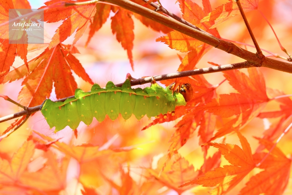 | 作品タイトル | カエデの紅葉とオオミズアオの幼虫 | モデルリリース | なし | |