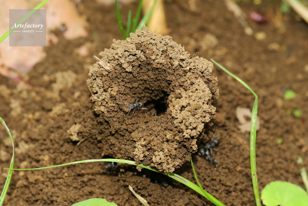 | キャプション | 雨水が入らないように周りを高くしたアリの巣穴 | 制限事項 | ||