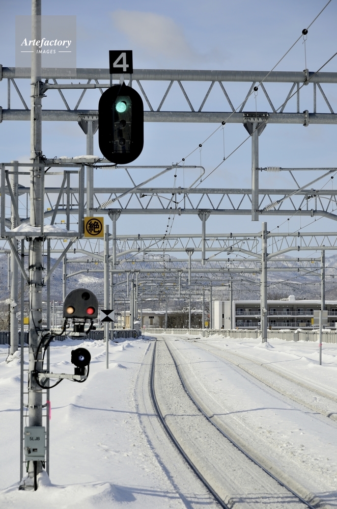 | 作品タイトル | 雪の函館本線旭川駅構内と信号機 | モデルリリース | なし | |