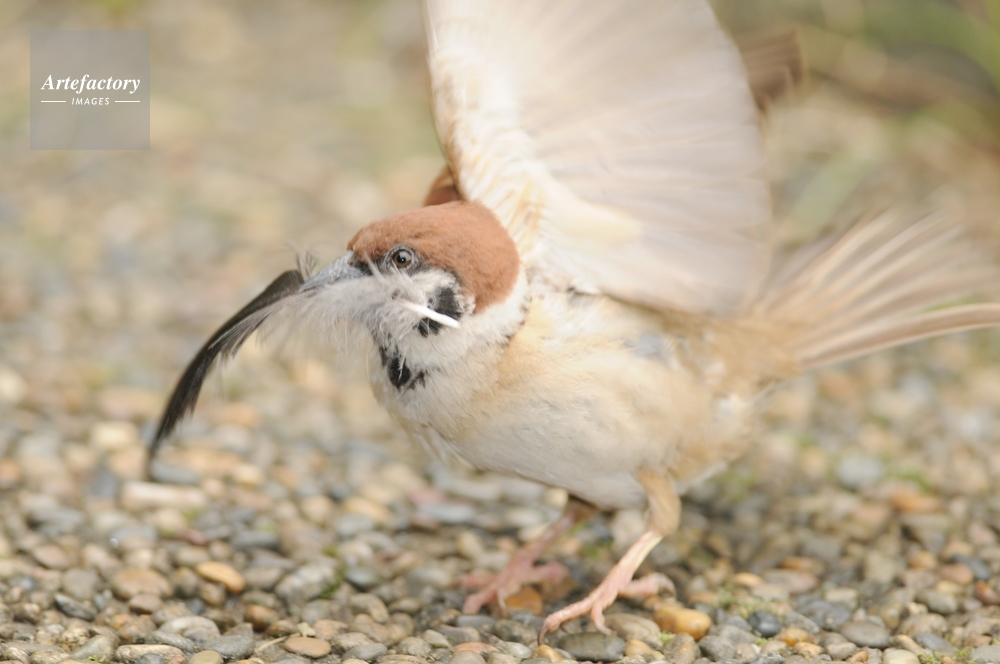 | 作品タイトル | スズメ 巣材に鳥の羽を集める | モデルリリース | なし | |