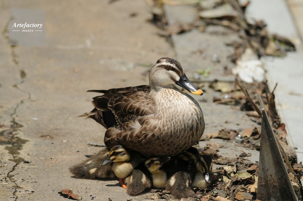 | キャプション | 親子 土手の上でヒナを抱き直射日光から子供を守る | 制限事項 | ||