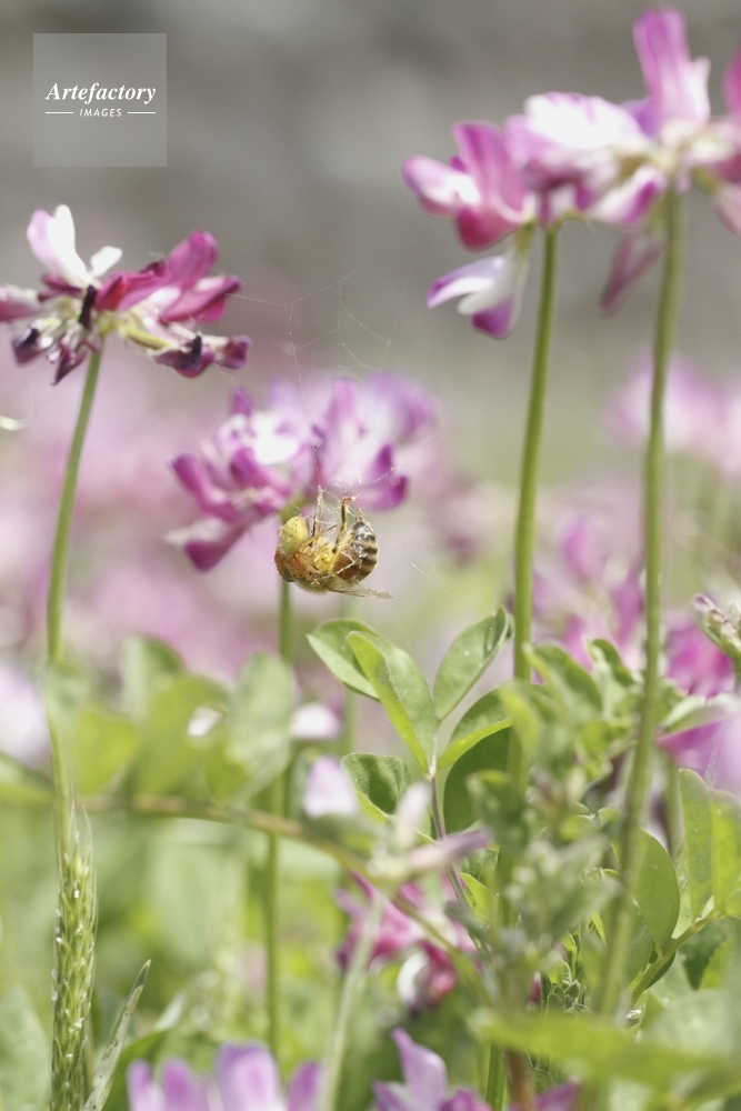| キャプション | レンゲ訪花中クモの巣にかかる | 制限事項 | ||