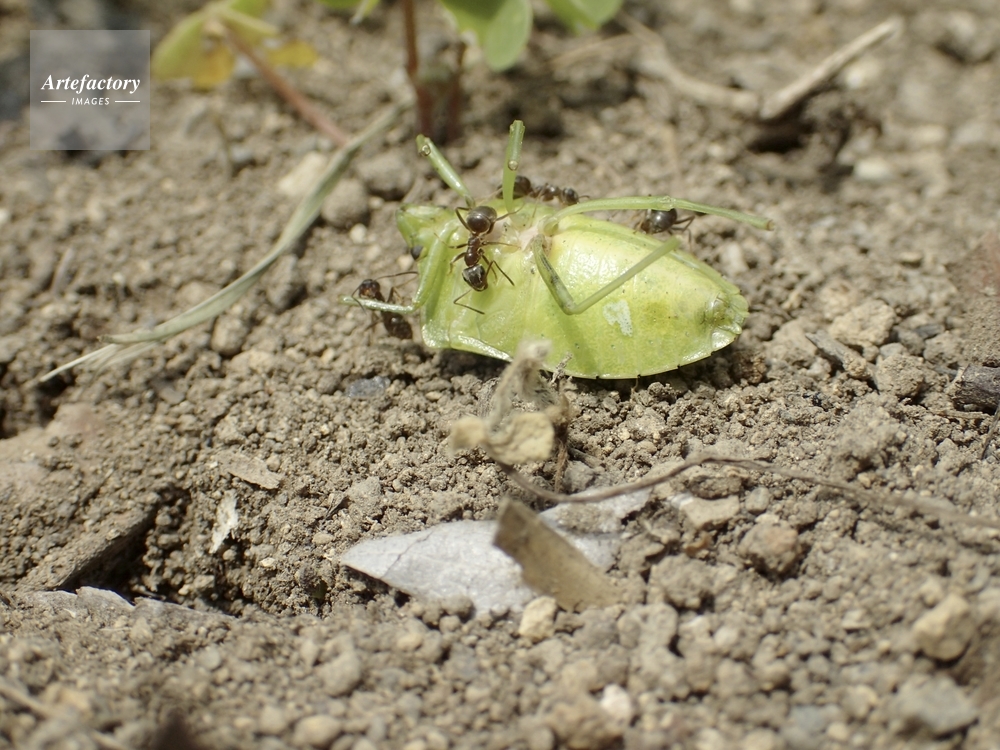 | キャプション | アオクサカメムシ?の体をかみ砕いて巣に運ぶ アリ科 | 制限事項 | ||