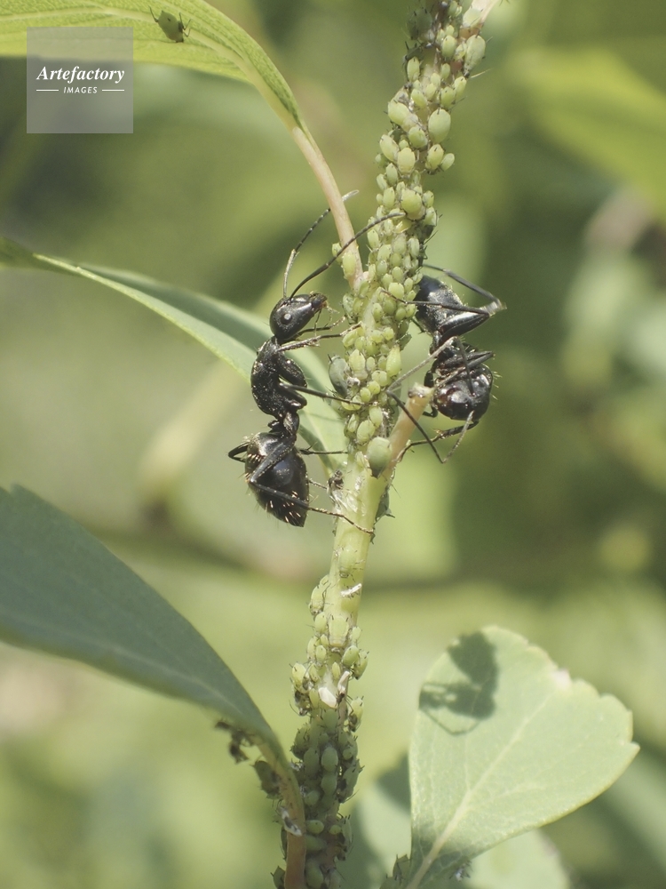 | キャプション | アブラムシの甘露を舐めに集まる アリ科 | 制限事項 | ||