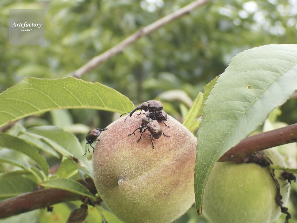 | キャプション | 桃の実に集まる 実を食べる 産卵加工をする等 オトシブミ科 | 制限事項 | ||