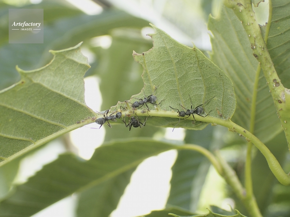 | キャプション | クヌギ葉についたアブラムシに集まる アリ科 | 制限事項 | ||