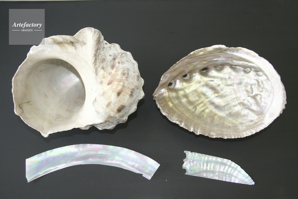 | 作品タイトル | 螺鈿細工 素材(左)ヤコウガイ(右)アワビ | モデルリリース | なし | |
