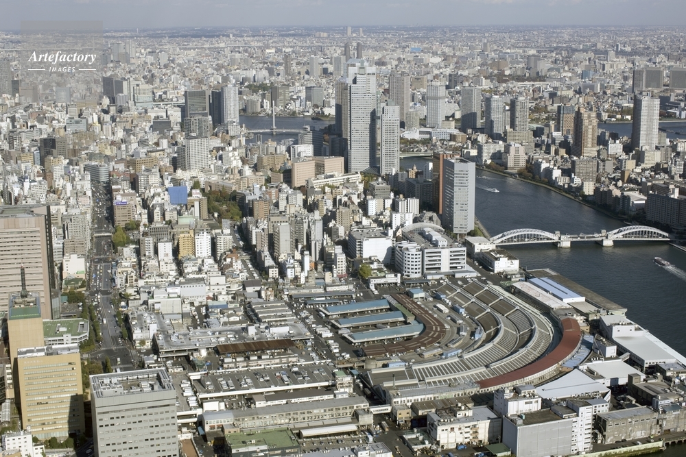 | 作品タイトル | 築地中央卸売市場と隅田川 | モデルリリース | なし | |