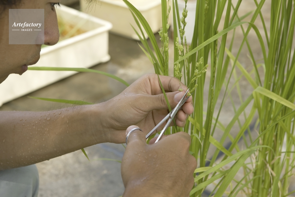 | 作品タイトル | 稲の人工交配・未開穎の穎花を切り落とす | モデルリリース | なし | |